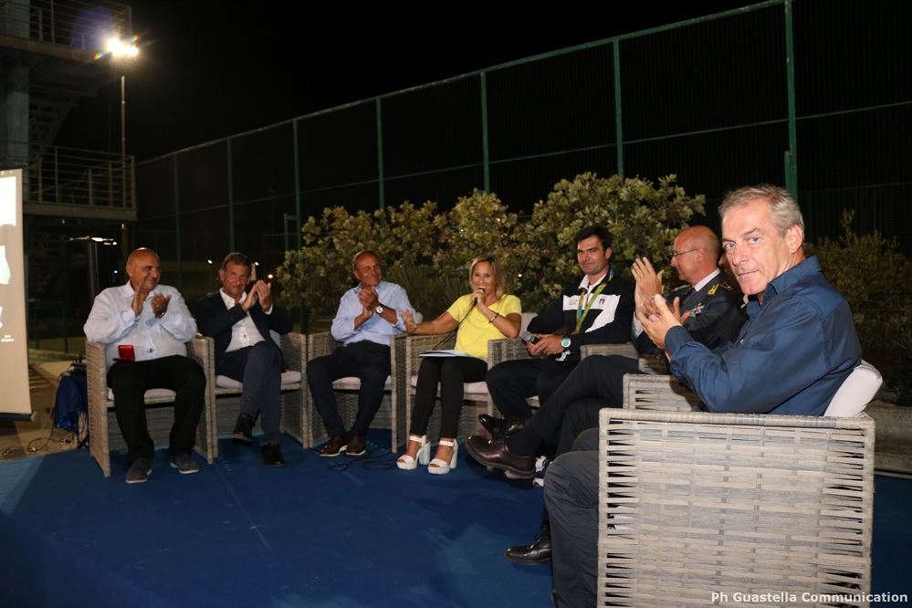 Sul palco il Presidente del CUS Bari Giuseppe Seccia, il Rettore dell'Università degli Studi "Aldo Moro" di Bari Antonio Uricchio, il Rettore del Politecnico Eugenio Di Sciascio, il Presidente del CONI Puglia Elio Sannicandro, il Sindaco di Bari Antonio Decaro, e Presidente della Regione Puglia Michele Emiliano e il Comandante Regionale Puglia della Guardia di Finanza Generale di Divisione Vito Augelli.